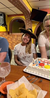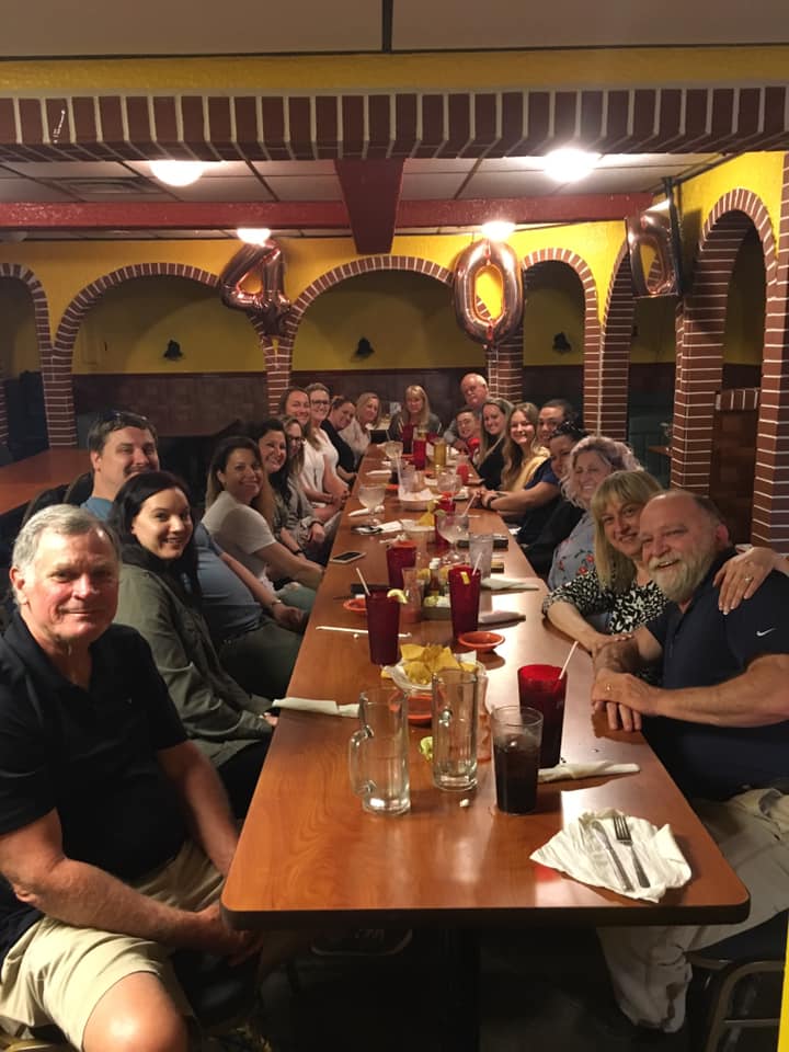 Friday came, which was Jess’s birthday. I wished her a happy birthday and then went to my parent’s house where we were meeting to go out to dinner. I rode over to El Vaquero (my favorite Mexican restaurant) with my little brother and started looking through the building for my mom, dad, other brother and sister-in-law. Finally we found them and OH EM GEE YOU GUYS, so many of my family and friends were there. My parents, brother and sister-in-law, aunts and uncles, cousins, cousin’s boyfriend and even my friends from training were there! THEN, Jess came in who I thought was at a game and wasn’t going to be there!