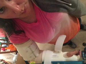 repaired the area that I’ve always thought the initial injury was in! I’m not going to lie to you. It was mental and physical torture. I had to do this torture device that forced my wrist to twist for 3 hours every night for 6 months-ish (for real, look at the picture!). It’s all I did in the evenings so basically I lost all muscle tone and any metabolism I had going for me. Did I mention my confidence? That all went out the window with that horrible brace. All of those wrist surgeries wore my wrist down and now it’s just not strong enough to play anything. The doctor says I’ll probably never do a push-up again so now I need to lose a bunch of weight so I can get into a shape that I can try. Nobody tells me I can’t do anything! I try and try and try… usually until I either succeed or until I hurt myself.